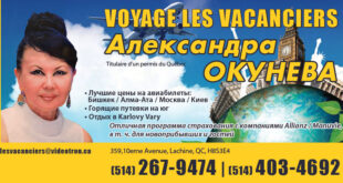 Titulaire d’un permis du Québec. • Лучшие цены на авиабилеты: Бишкек / Алма-Ата / Москва / Киев • Горящие путевки на юг • Отдых в Karlovy Vary Отличная программа страхования с компаниями Allianz / Manuvie, в т. ч. для новоприбывших и гостей. Александра Окунева