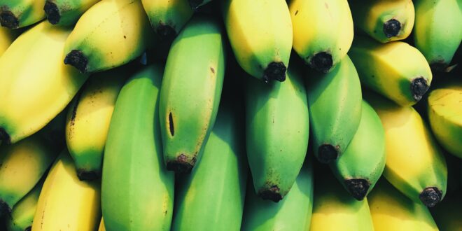 - Выбирайте зеленые бананы – они полезнее желтых. Зеленые бананы содержат большое количество резистентного крахмала. Это неперевариваемая клетчатка, которая необходима для хорошей работы кишечника, благотворно влияет на микробиоту (кишечную микрофлору) и улучшает здоровье печени.