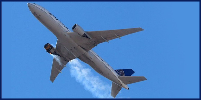 Boeing-777 направлялся из Денвера в Гонолулу с 231 пассажиром и 10 членами экипажа на борту. Один из двигателей загорелся, а элементы его обшивки начали падать на землю. В это время самолет пролетал над жилыми кварталами города Брумфилда. Передняя часть гондолы двигателя приземлилась на крыльцо жилого дома, а множество частей поменьше упали в парке и на спортивной площадке неподалеку. Самолет смог безопасно приземлиться в аэропорту вылета. Ни пассажиры, ни горожане не пострадали, хотя в парке в это время гуляло много людей. Полиция призывает жителей города не трогать обломки, а Национальный совет по безопасности на транспорте начал расследование инцидента.