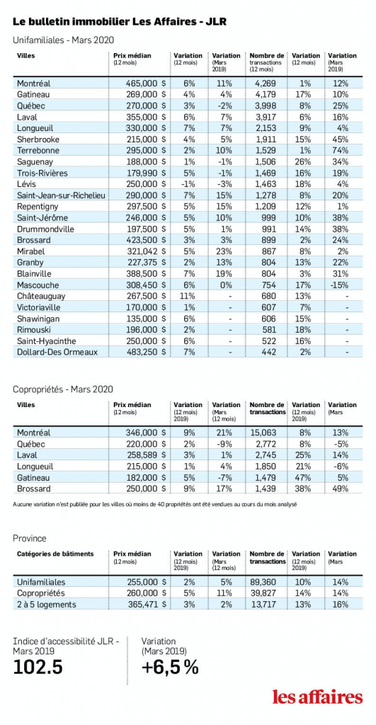По данным Земельного реестра Квебека, которые проанализировала фирма JLR, с апреля 2019 по март 2020 в провинции было продано 89 360 домов на одну семью, что на 10% больше аналогичного периода предыдущего года.
