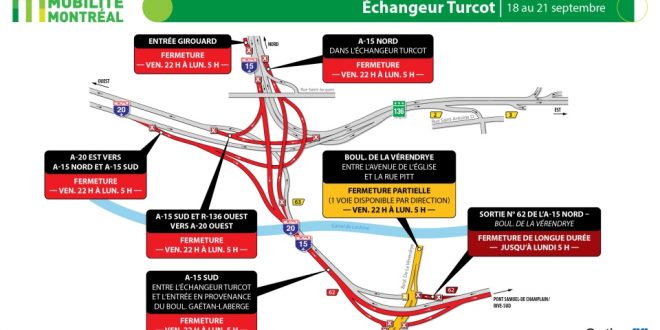 Как результат, будут перекрыты: въезд на Girouard Ave. и въезд на Highway 15 South and North с Highway 20 East. А также Chemin de la Pointe-Nord и въезд на Rene-Levesque Blvd.