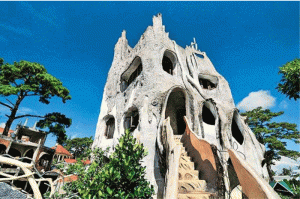 Гостевой дом Hang Nga, или, как его чаще называют, «Сумасшедший дом», напоминает огромное причудливое дерево. Ни одного угла — все стены округлые, лесенки закручиваются спиралью или перекинуты с одного корпуса на другой. Это смесь фантазий в стиле Гауди, «Алисы в Cтране чудес» и русских народных сказок. Ночью в комнатах спят постояльцы, а днем по дереву «путешествуют» экскурсанты. |
