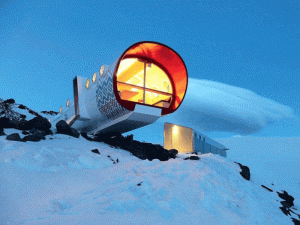 Один из самых высокогорных отелей мира (3912 м) расположился на южном склоне Эльбруса. Гостевые модули напоминают капсулы космического корабля. Спальни рассчитаны на 12–18 мест, есть кают-компания. В техническом помещении — комфортабельные туалеты и душ. Вся энергия поступает от солнечных батарей. |