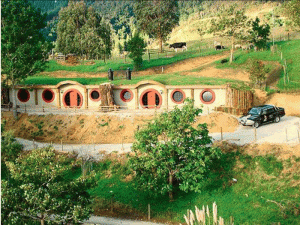 Мотель, расположенный среди зеленых сельскохозяйственных угодий, предлагает размещение четырех типов: в вагоне поезда 1918 года, внутри боевого самолета — участника вьетнамской войны, в патрульном катере времен Второй мировой и, наконец, под землей — в «хоббичьих норах» (на фото). Все номера оборудованы кухней, туалетом и душем. |