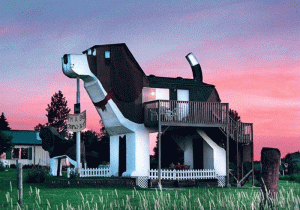 10-метровую собаку породы бигль из фанеры и гипсокартона зовут Милашка Вилли. Комнаты расположены в ее животе. Авторы проекта — семейная пара художников, резчиков по дереву.